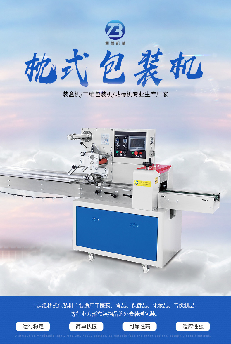 三伺服枕式包裝機是一種臥式三面封口,能自動完成制袋、填充、封口、切斷、成品等工序的包裝設(shè)備,廣泛應(yīng)用在食品、日用化工、醫(yī)藥等行業(yè)自動化生產(chǎn)線的流水包裝上。適應(yīng)的包裝物士般為塊狀,筒狀規(guī)則物員,如:餅于、蛋糕、面條、化妝品、紙巾等。
